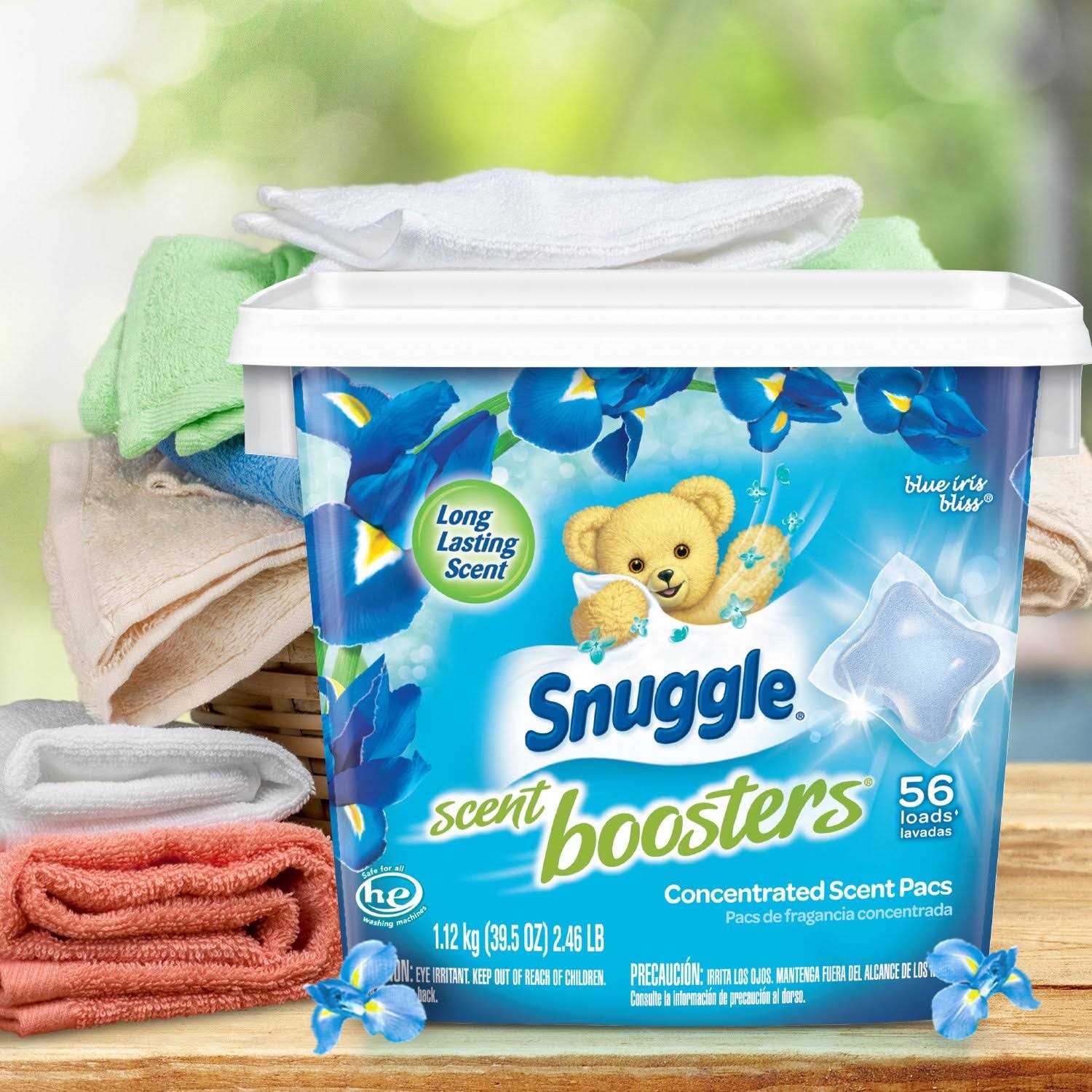 Find your happiness with Blue Iris Bliss, a crisp and invigorating mix of bright citrus nuances blended with hints of fresh red berry and finished with warm woody notes and soft musk. Great for all types of clothes, including active wear and sleepwear, these concentrated pacs conveniently dissolve completely in your wash with no messes or spills. Simply place a Snuggle Scent Booster into the washer drum before adding your laundry, adding detergent as you normally would. Snuggle Scent Boosters are safe for all washing machine types, including HE. This package includes one tub of 56 Snuggle Blue Iris Bliss scent boosters, enough for 56 loads. Find your happiness with Blue Iris Bliss, a crisp and invigorating mix of bright citrus nuances blended with hints of fresh red berry and finished with warm woody notes and soft musk. Great for all types of clothes, including active wear and sleepwear, these concentrated Pacs conveniently dissolve completely in your wash with no messes or spills. Simply place a Scent Pac into the washer drum before adding your laundry, adding detergent as you normally would. Scent Boosters are safe for all washing machine types, including high efficiency (HE) washers. This package includes one tub of 56 Snuggle Blue Iris Bliss scent boosters, enough for 56 loads.