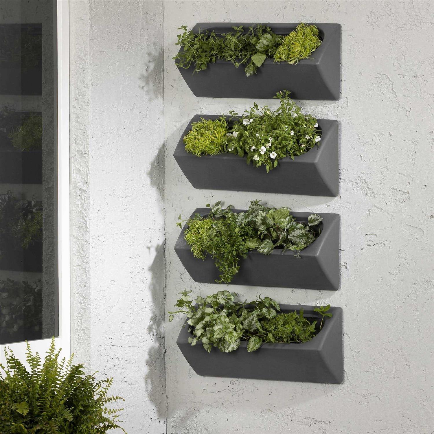 The Scandinavian style, featuring a clean, rectangular look and rounded corners that set it apart, is perfect for showing off your flowers. You can even grow fresh herbs if you prefer. With 4 planters that can hold up to 9 liters of soil apiece, you can create the layout of your choice and hang them on any wall you like your terrace, patio, or balcony to show off your creativity! A very useful drainage system Each planter has its own drainage system, which lets the water drain properly so your plants can flourish. This set gives you some versatile items! Very resistant flowerpots Weve done everything to make these planters as durable as possible. Theyre made of polyethylene resin a material that makes them resistant to UV rays, rust, and extreme weather. You can leave them outside year round, and their colors wont fade over time.