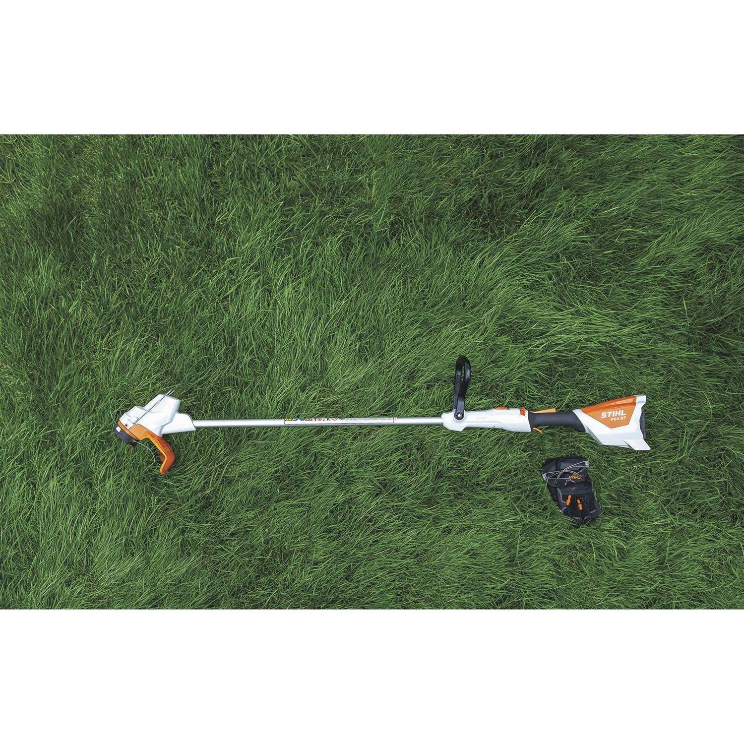 Get great value with the Stihl FSA 57 lithium-Ion trimmer. A lightweight, battery-powered trimmer, is an ideal choice for maintaining suburban yards. This trimmer cuts an 11 In. swath at a continuous high speed, saving time and doing more with a Stihl AK Series battery. With an AK 10 battery, the trimmer weighs just 7.5 Lbs and has a run time of up to 20 minutes on a single charge. For comfort and convenience, this unit features an adjustable shaft to customize height to the user, an easy-to-use AutoCut head which feeds noise-reducing line, and a bump guard to help the user trim carefully around obstacles like trees and shrubs. The FSA 57 trimmer is available as a stand-alone unit or as a value-priced bundle with the AK 10 battery and AL 101 battery charger. Other battery options are available.