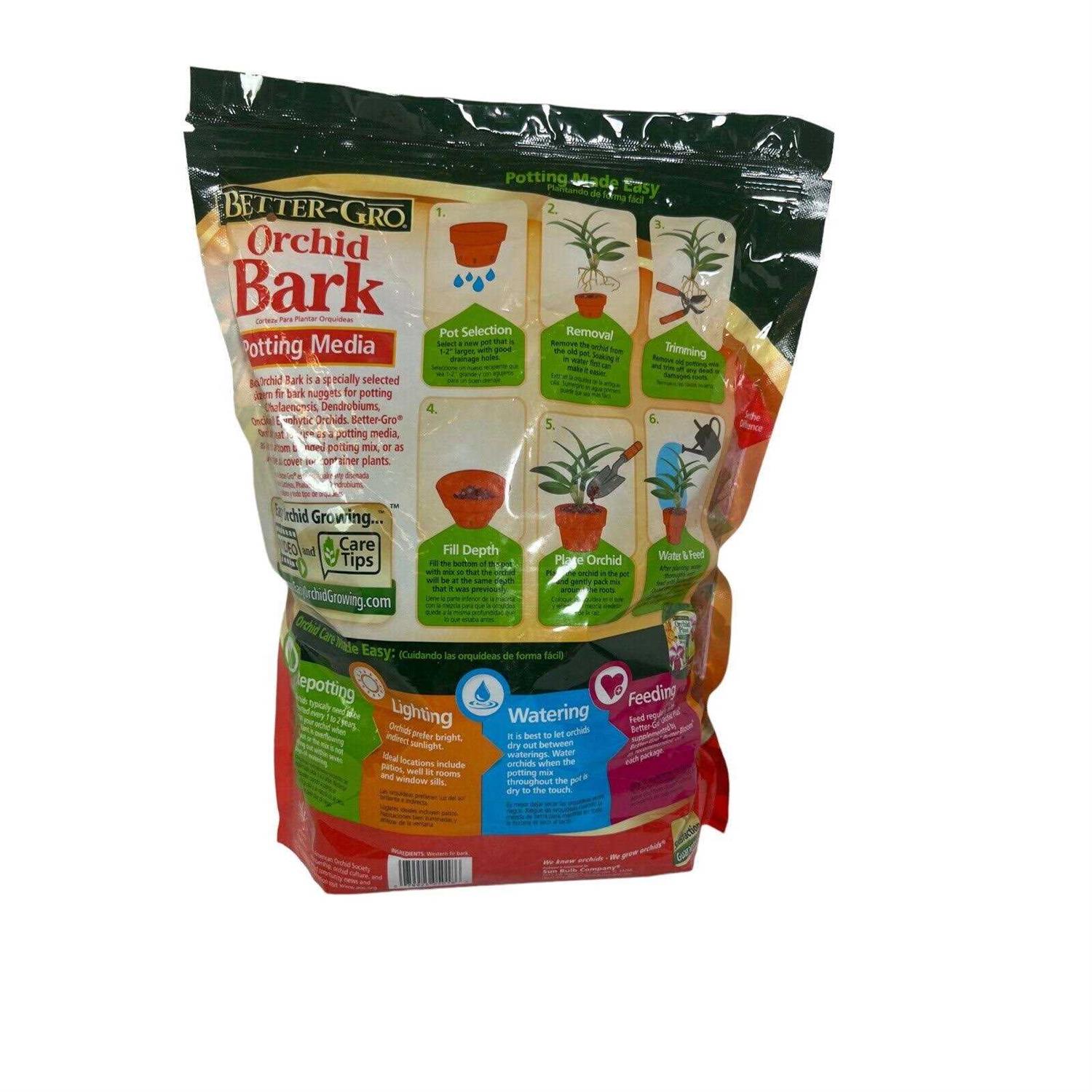 Grow healthier, more beautiful Orchids! Better Gro Orchid Bark is endorsed by the American Orchid Society! Use as a potting mixture for epiphytic orchids and ornamentals, such as bromeliads, to provide the right growing conditions Versatile medium is great for potting, re-potting, spot re-filling or as the base for a custom mixture Rich media of specially sized and graded grower’s choice western fir bark handles the needs of a wide range of ornamentals and orchids Controls moisture Organic Comes in a convenient re-sealable bag Detailed step by step instructions for successfully re-potting your orchid, also with pictures Sun Bulb Better-Gro Orchid Bark is a multi-purpose use, premium potting mix for ferns, bromeliads, epiphytic orchids, and a wide range of other ornamentals. The ideal potting mixture for “emergencies”, perfect for spot refilling, potting, or re-potting or for a custom mixture base. The medium of choice for general gardeners and orchid cultivators because of Better-Gro Orchid Bark‘s versatility and quality. Contains a combo of specifically graded and sized western fir bark and created specifically to tackle the potting needs of a variety of ornamentals and orchids. It can also be used as the base for a custom mixture. Endorsed by the American Orchid Society.