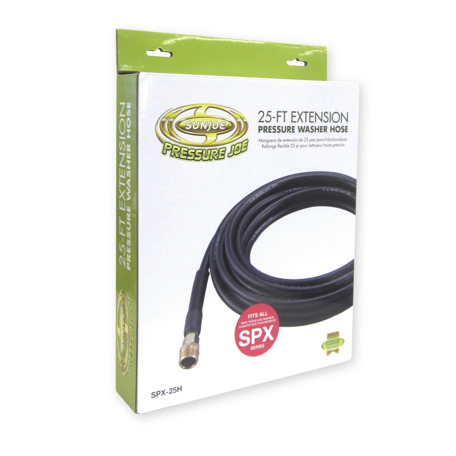 Reach more in less time with the 25 ft. weather and abrasion-resistant extension hose made specifically for use with all Sun Joe SPX series pressure washer models. Cover more ground and take your work to new heights without having to relocate the pressure washer each time. Blast the gutters clean, rinse the roof, wash the windows and clean the entire deck from top to bottom in one smooth move. Gain more distance, with less dragging and more doing. Flexible design resists kinking, rated up to 2,030 PSI for years of reliable performance.