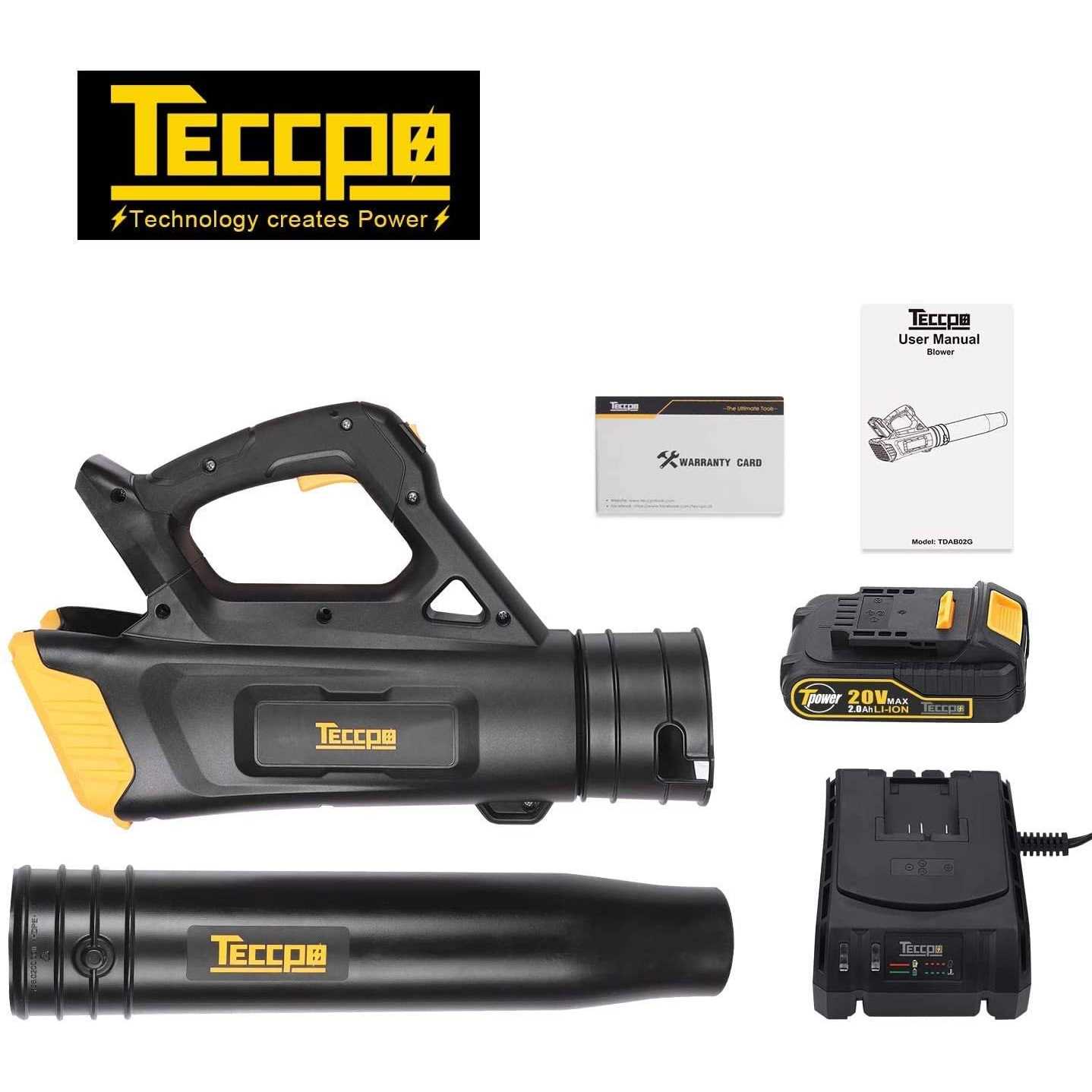 Advanced Motor & Turbo Technology: Experience the TECCPO leaf blower’s exceptional performance, driven by an advanced copper motor that guarantees extended product lifespan and energy efficiency compared to traditional engines. With the added advantage of turbocharging technology, this leaf blower achieves efficient compression and expansion of gas, generating immense power to effortlessly clear dust, leaves, debris, and even powdery snow. Powerful Airflow & Speed: Utilize the power of the 20V motor and innovative axial fan design to achieve remarkable airflow. Witness the capability of 310 CFM (airflow) at a maximum speed of 85 MPH (air speed), making it ideal for light-duty clean-ups in yards, driveways, sidewalks, decks, garages, shops, and more. Quick Charge Battery & Mobility: Embrace the convenience of cordless operation, granting you unparalleled mobility. The 20V 2.0Ah battery provides a speedy 1-hour charging time, offering an impressive 35 minutes of continuous runtime. Enjoy flexibility during your tasks with no-load running times of 35 minutes (low speed – 9,000 RPM) or 10 minutes (high speed – 15,000 RPM). Adaptable Speed Options: The TECCPO leaf blower features embedded speed-switching functionality for versatile use. Choose between no-load speeds of 9,000 RPM or 15,000 RPM. Low-speed mode is perfect for preventing dust splashing and conserving energy, while high-speed mode swiftly and effectively clears leaves. Tailor the variable speeds to match your specific sweeping requirements. Compact & Comfortable Design: Despite its high-performance capabilities, this leaf blower weighs a mere 5.1 lbs. The compact structure and optimized materials minimize weight, enabling effortless control for one-handed operation. The ergonomic design prioritizes control and minimizes arm strain. Versatile & Effortless Tasks: Discover the extensive applications of this leaf blower: Clear leaves in driveways and gardens. Quickly remove powdery snow from paths and driveways, doubling as a snow blower. Efficiently blow grass cuttings from lawn mower undersides. Blast your car with precision, effectively removing debris from tight corners. Package Includes: 1 x TECCPO Leaf Blower 1 x 20V 2.0Ah Battery 1 x Fast Charger User Manual