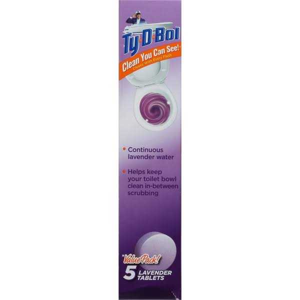 Automatically clean, freshen and deodorize your toilet with Ty-D-Bol Lavender In-Tank Tablets. Drop the purple tablets in your toilet tank to activate powerful detergents that automatically provide a continuous. Clean You Can See with every flush. Our ‘Purple Formula’ works to fight and prevent hard water stains and make sure your toilet keeps a tidy bowl without harming your plumbing or toilet tank. Keep your toilet stain-free and your bathroom smelling oh-so-fresh with ty-d-bol Continuous Purple Toilet Tablets.
