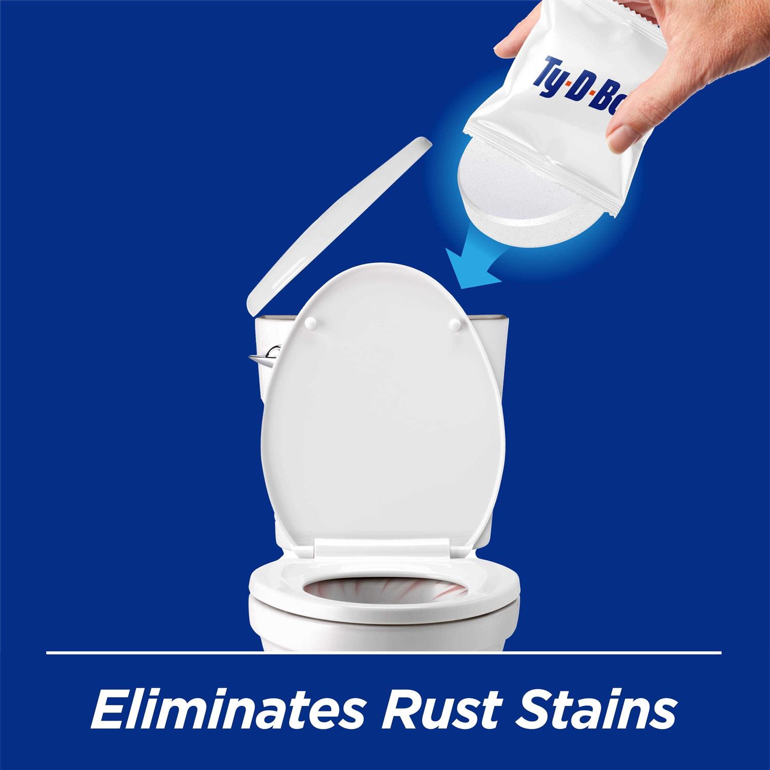 TyDBol Automatic Rust Tablets provide a clean you can see by eliminating rust stains in your toilet. This automatic toilet cleaner does the work for you, all you have to do is flush. These tablets not only eliminate rust, but also repel rust for up to 4 weeks (per tablet). TyDBol Rust Tablets wont harm your toilets and are safe for septic systems. Not only do these Rust Tablets fight rust stains, but they also help eliminate hard waters stains. While the tablets go in the tank of the toilet, they keep your entire toilet system rust free with every flush. Don’t let rust stains become a problem in your bathroom – Use TyDBol Automatic Rust Tablets for easy cleaning that works! Automatic toilet cleaning tablets. Automatically removes rust stains with every flush. Safe for plumbing and septic systems. Each tablet lasts up to 4 weeks. Eliminates rust and hardwater stains.